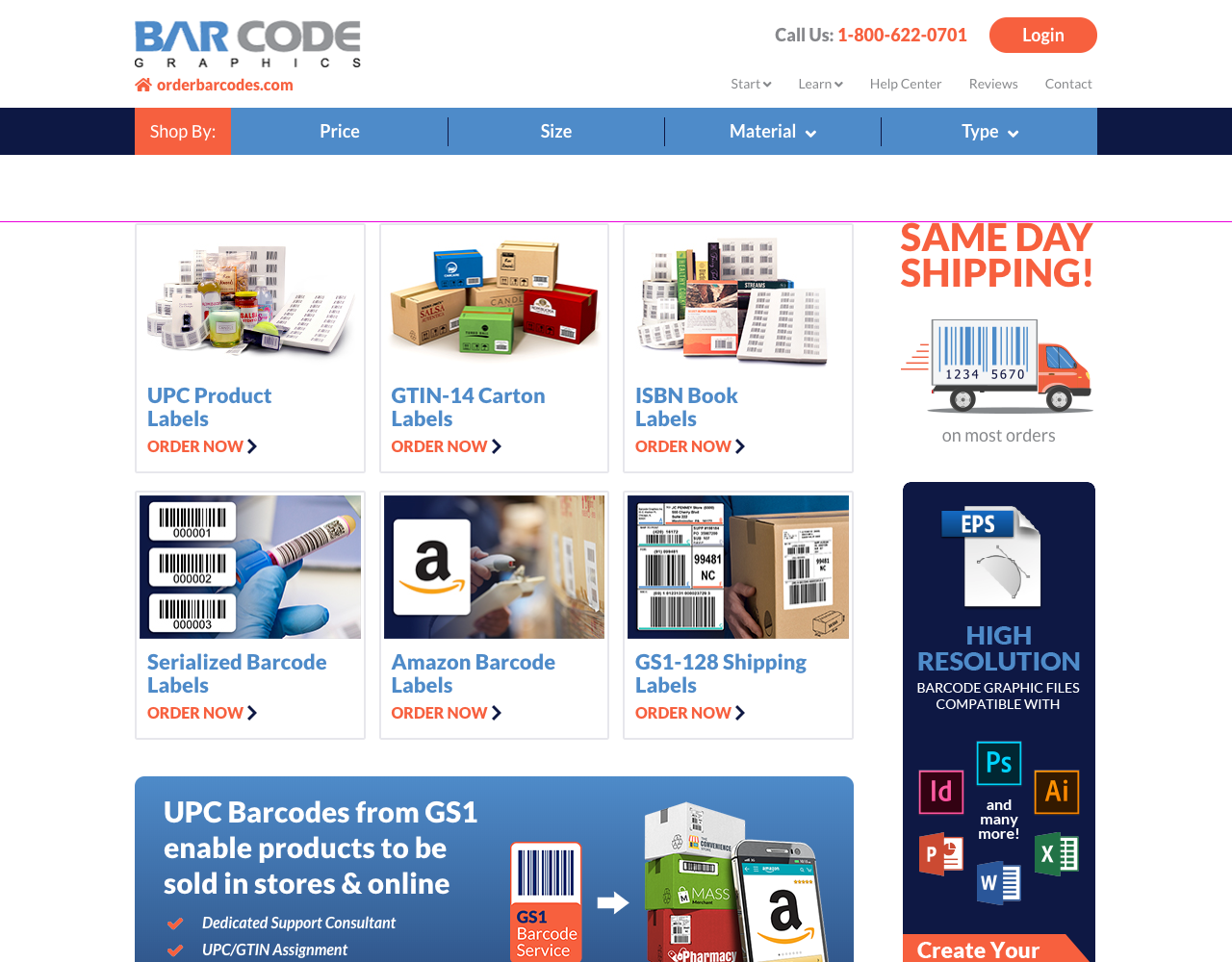 Orderbarcodes.com is the easiest, quickest way to order printed barcode labels for immediate shipping. Our online portal enables users to place barcode label orders for more than 50 STOCK label sizes in 4 different material types. Most orders ship the SAME DAY they are placed.